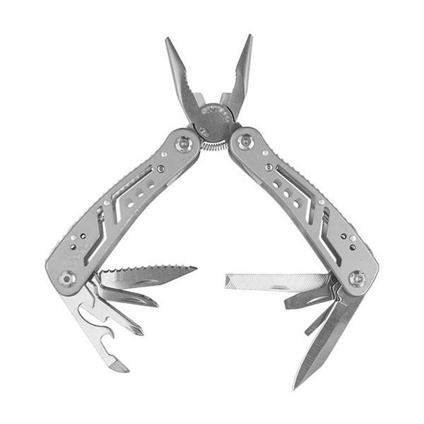 Компактний і міцний мультитул 11в1 поєднує в собі 11 корисних функцій, які завжди під рукою. Виготовлений із нержавіючої сталі, має ергономічні ручки сірого кольору з матовим покриттям. Цей багатофункціональний інструмент стане чудовим помічником удома, в автомобілі, у подорожах, на риболовлі чи в походах.